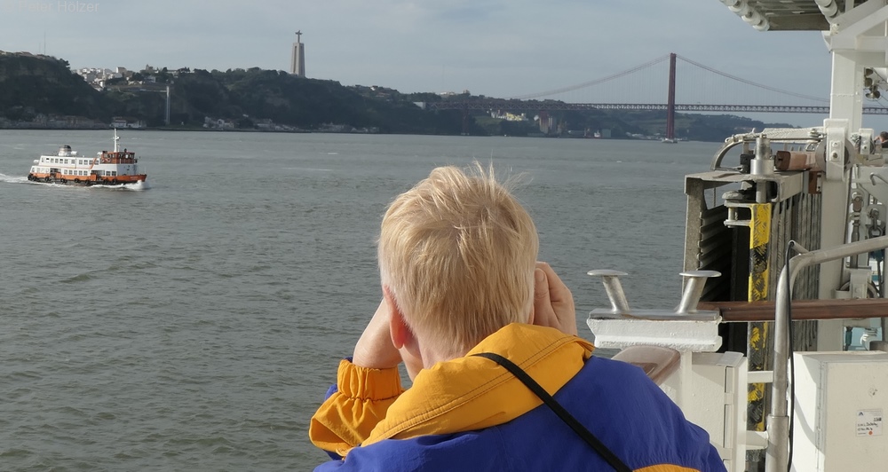 Am Vormittag erreichten wir den Tejo, den wir flussaufwärts hochschipperten, unterquerten die 1966 erbaute Hängebrücke, die in Konstruktion und Farbe der Golden Gate Bridge in San Francisco sehr ähnlich ist. Auf der südlichen Seite des Tejo befindet sich die imposante Christusstatue, die wiederum sehr an die Statue in Rio de Janeiro erinnert. Schon hatten wir die ersten zwei Wahrzeichen von Lissabon im Sack.