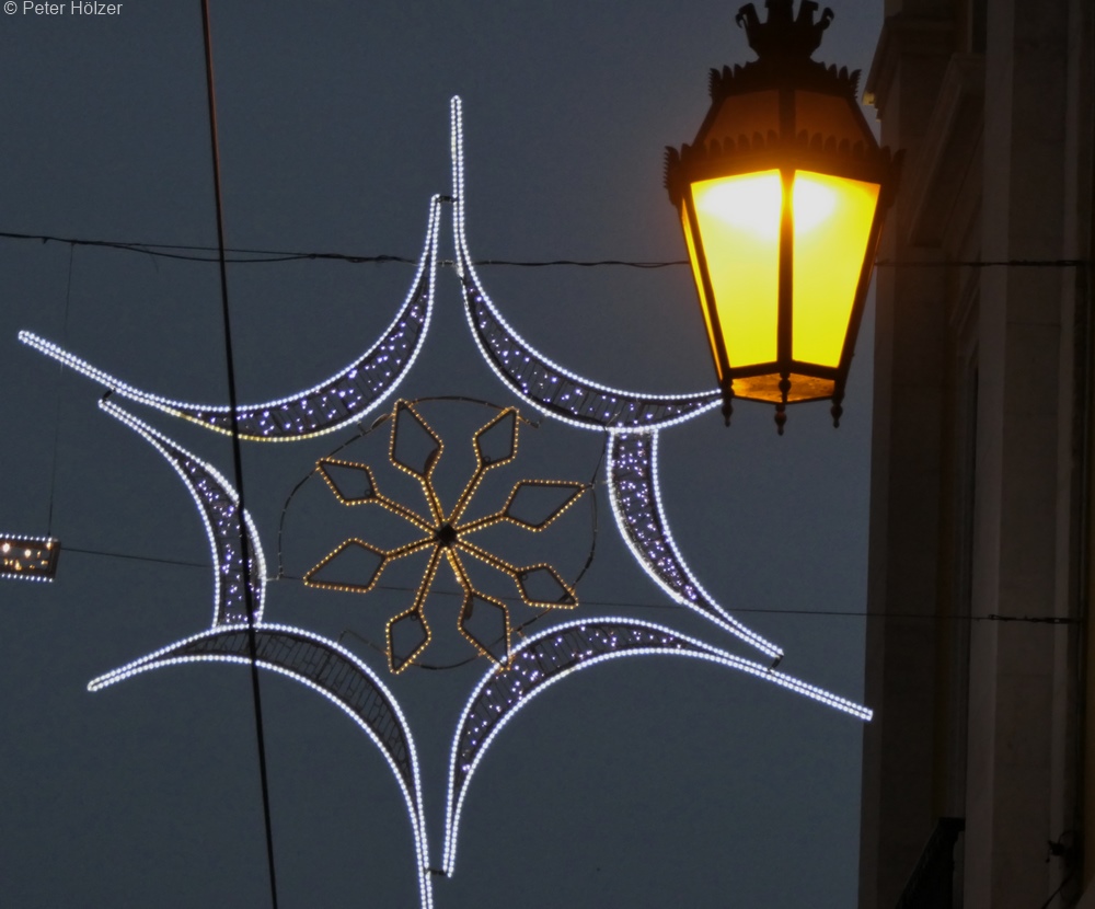Nach einer Kaffeepause dämmerte es allmählich und nun kam langsam die überall angebrachte Weihnachtsbeleuchtung mehr und mehr zur Geltung.