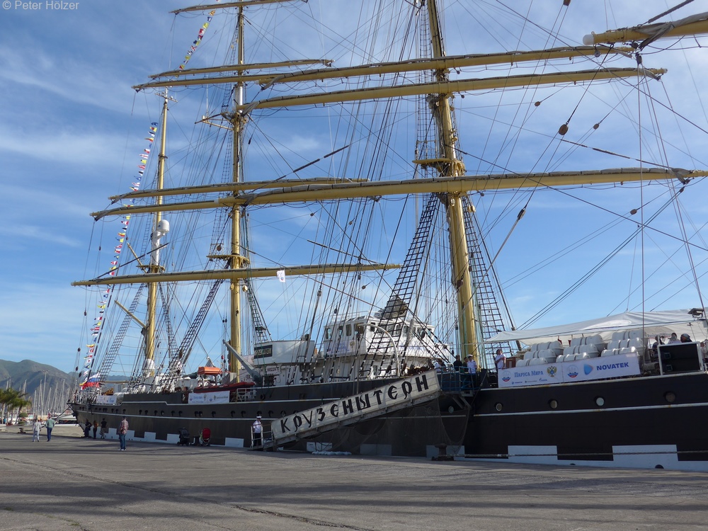 Ein erster Gang führte uns jedoch zu einer etwas abgelegeneren Pier, wo der russische Großsegler Kruzenshtern lag (eingedeutscht: Krusenstern; russisch Крузенште́рн,), eine imposante Viermastbark.