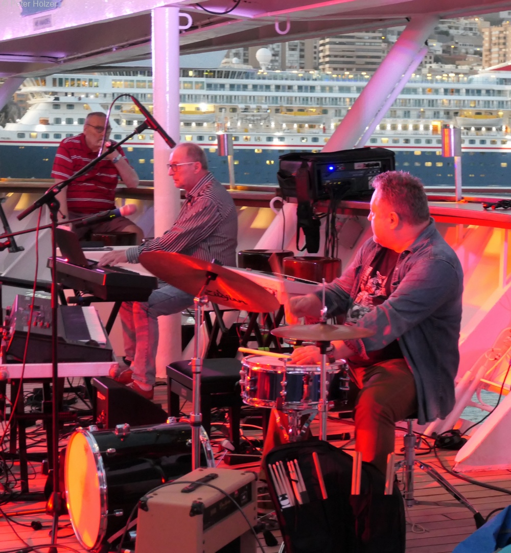 Die Spirit Band, ansonsten mit Schlager und Pop für die Tanzabende in der Pazifik Lounge zuständig, rockte an diesem Abend was das Zeug hielt. Mit Songs von Status Quo, Deep Purple, Tina Turner usw. hielten sie die Stimmung am Kochen.