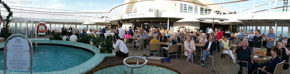 Auf dem Außendeck mittschiffs befindet sich die Kopernikus Bar.