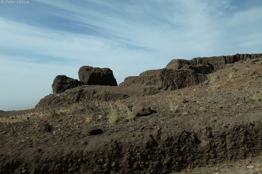 Im Gegensatz zu der Fahrt vorgestern, war die Gegend heute sehr karg, teilweise einer Wüste sehr ähnlich. Es ging abseits der geteerten Straße ins Gelände. Wir machten mehrere Stopps, wobei sich eigentlich nicht erschloss, wozu eigentlich.