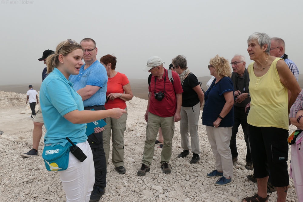 Bei dem einen sagte ich spöttisch, dass es sich um einen Ablageplatz für Bauschutt handeln könne. Und das war gar nicht so verkehrt. Das helle Gestein eignet sich vorzüglich für die Herstellung von Zement und wurde deshalb abgebaut und verarbeitet. Allerdings könnten die Chinesen, wie der Guide erklärte, den Zement sehr viel billiger liefern als die einheimische Produktion, so dass diese dann ganz zum Erliegen kam.