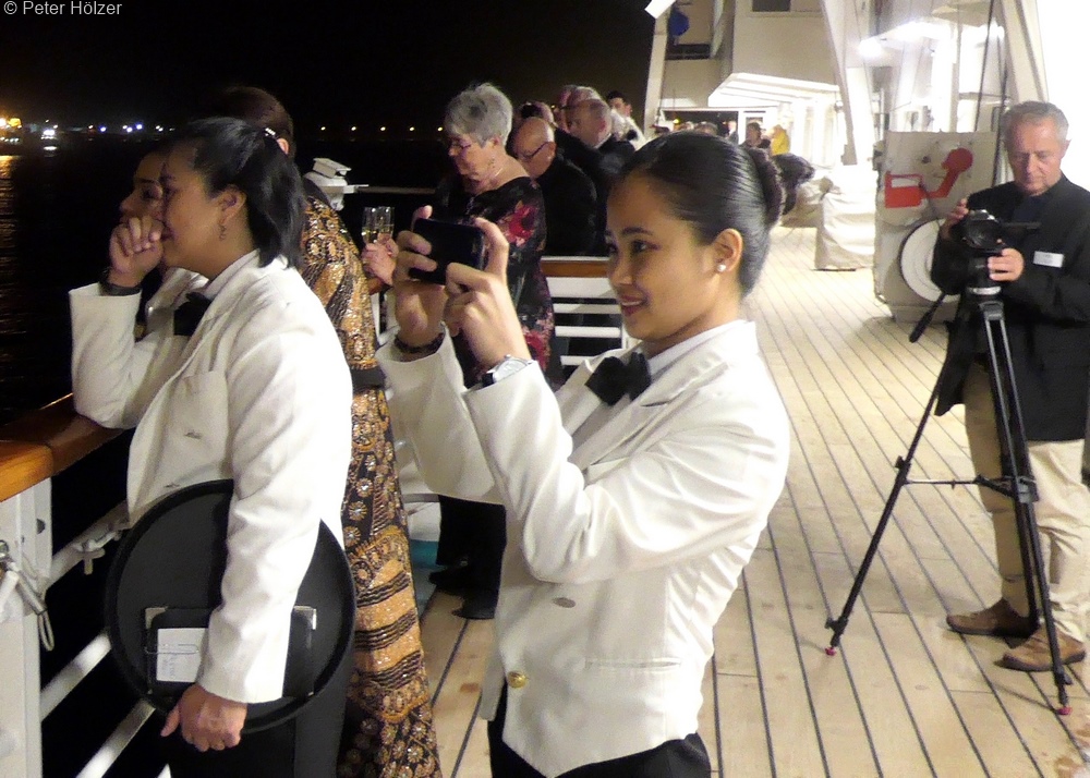 Am Nachmittag gab es einen Cocktailempfang für alle Passagiere, die die gesamte Weltreise mitmachen, immerhin stattliche 332 an der Zahl.