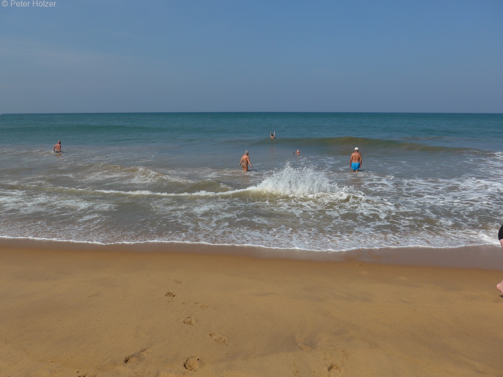 Das flache Wasser reichte recht weit nach draußen, sodass in diesem Bereich gefahrlos geplantscht werden konnte. Wenn eine hohe Welle kam, trieb man wie ein Korken oben auf und wenn sie sich genau gerade dort brach, wo man stand, wurde man auch schon mal umgerissen. Aber auch das war nicht schlimm, es gab auf dem Grund keine Steine oder Korallen, sondern nur Sand.