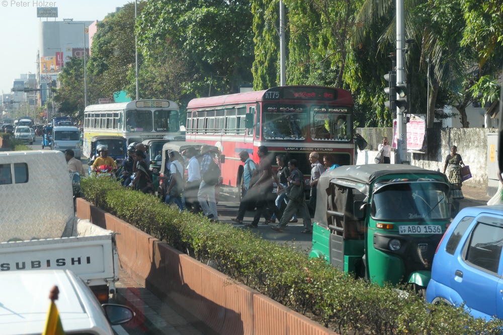 Die Fahrt durch den dichten Berufsverkehr zu unserem Ziel, dem Mount Lavinia Hotel, 15 Kilometer südlich von unserem Liegeplatz im Hafen von Colombo gelegen, war bereits ein Erlebnis. Zwischen den bunten Linienbussen und den Pkw wuselten unzählige Tuk-Tuks und an jeder Kreuzung versuchten Verkehrspolizisten das Chaos ein wenig zu ordnen.