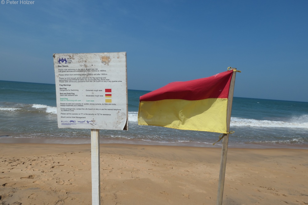 Die rote Flagge, die vor Baden im Meer warnte, wurde durch eine Gold-Rote ersetzt, was bedeutete: Baden möglich, aber Vorsicht vor hohen Wellen.