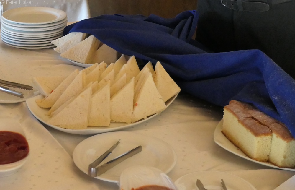 Bei den Sandwiches war der Rand vom Weißbrot abgeschnitten, also auch hier alles „very British“.