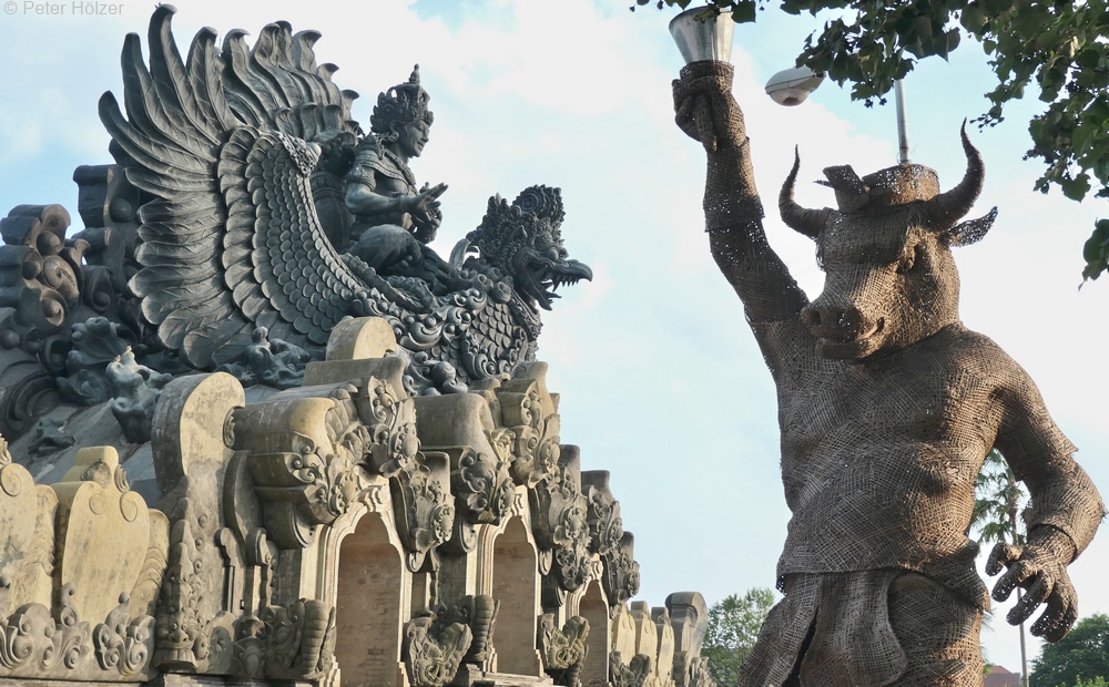 Aber auch die unzähligen Tempel (jedes Dorf hat mindestens einen), die Architektur, die figürlichen Statuen, die man an Kreuzungen findet, die allgegenwärtigen kleinen Opfergaben sind Auswirkungen dieses alles durchdringenden Glaubens. Neben den Göttern spielen gute und böse Geister, die überall innewohnen können, eine zentrale Rolle, auch im täglichen Leben.