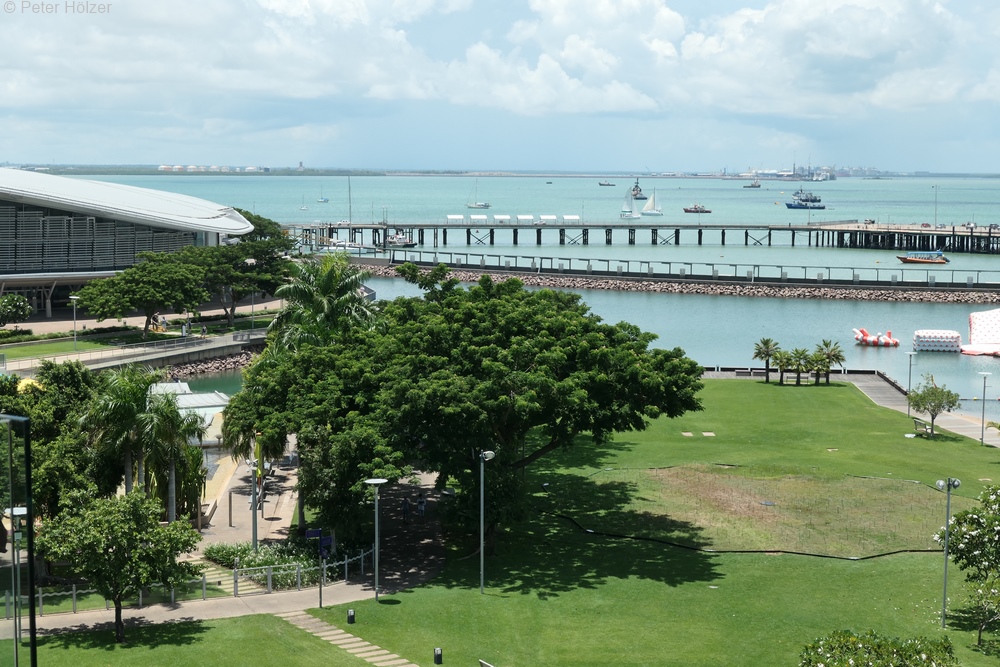 Wir fuhren jetzt wieder um halb Darwin herum bis zur Bushaltestelle „Stokes Hill Wharf“. Von dieser Haltestelle wäre es noch ein ganzes Stück zum „Indo Pacific Marine“ zu laufen gewesen. Zum Glück kamen wir vorher wieder mit dem Fahrer ins Gespräch, der meinte, dass dieses Aquarium nachmittags oft geschlossen sei. Wir sollten im Bus bleiben, da er dort sowieso nochmal vorbeifährt und wenn er sieht, dass geöffnet ist, würde er einen ausserplanmäßigen Stopp einlegen und wenn nicht, würden wir weiter bis zum Kreuzfahrtterminal mitfahren.