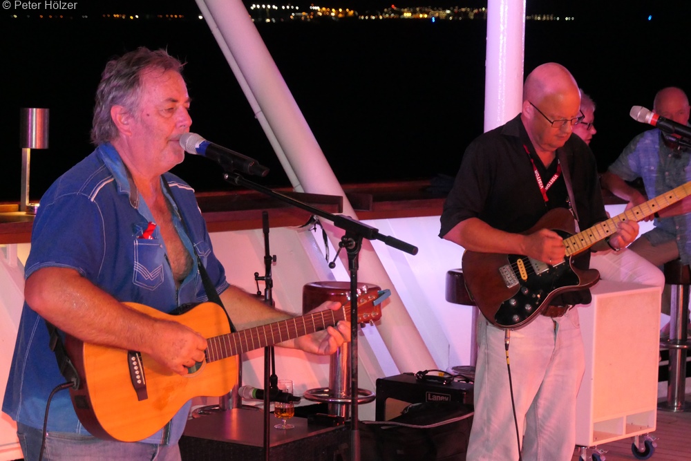 Den Abend beendeten wir an der Phoenix-Bar am Heck der ARTANIA. Dort spielte ein einheimisches Gitarrenduo gefällige Country- und Bluesmusik.