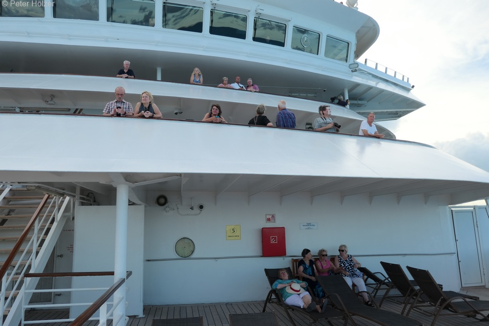 Bereits im Tagesprogramm war zu lesen, dass sich alle Passagiere noch an diesem Abend in das an der Pier liegende Terminalgebäude mit ihren Pässen zum sogenannten Facecheck begeben müssen. Dort wird von den Immigration-Officers geprüft, ob man noch dem Passbild im Pass ähnlich sieht und ob man auch online ein Visum beantragt hat.