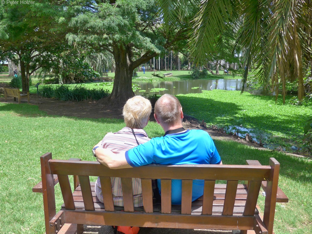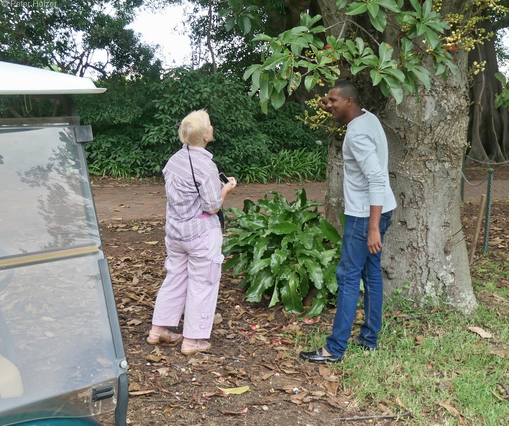 Erste Station war der Botanische Garten. Dort nahmen wir das nicht allzu teure Angebot einer halbstündigen Führung an. Vishnu, ein freundlicher indischstämmiger junger Mann, fuhr den Elektro-Golfcart in dem wir Platz nahmen und erklärte uns stolz und begeisternd die Schönheiten des Gartens.