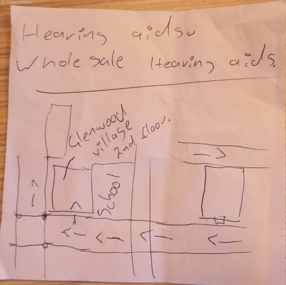 Der Hörgerätespezialist war sehr nett, erklärte uns, dass die besten Hörgeräte aus Deutschland kommen, das es aber per Gesetz nicht gestattet sei, einfach Hörgeräte zu verkaufen ohne sie richtig anzupassen. Es müsste ein Hörtestprotokoll vorliegen und die Feinjustierung könne nicht in einem Tag erfolgen. Was wir suchen sei kein High-Tec-Gerät, sondern ein „simple hearing Amplifier“ (einfacher Hörverstärker) und die dürften in Südafrika nicht verkauft werden. Allerdings kenne er einen Kollegen, der diese Dinger trotzdem verkaufe.