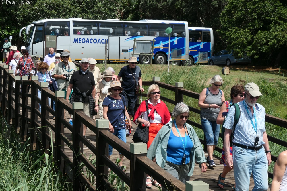 Am Anleger angekommen, wurde unserem Fahrzeug ein Parkplatz zugewiesen, auf dem auch schon vier oder 5 Busse parkten – alles Phoenix-Busse. Und vor dem Toilettenhäuschen bildeten sich lange Schlangen, natürlich von Phoenix-Reisenden.