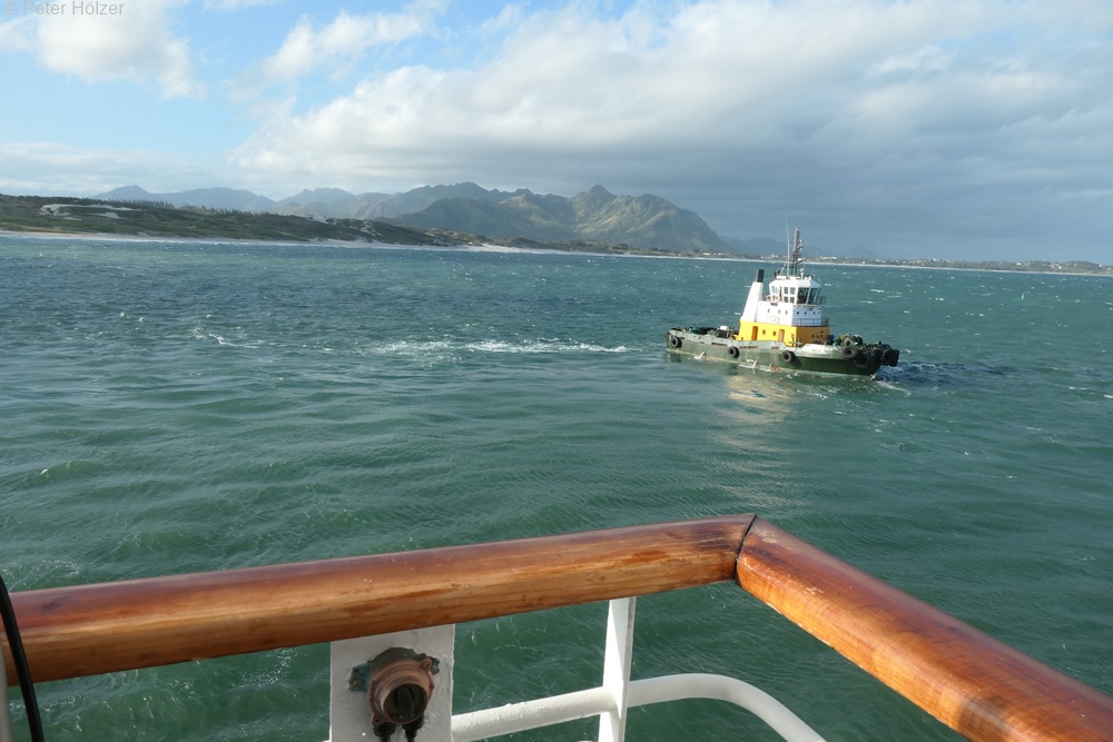 … genauso wenig bekamen wir mit, wie die ARTANIA am frühen Morgen in Richard‘s Bay festmachte, nachdem der Lotse wieder via Hubschrauber abgeseilt worden war.