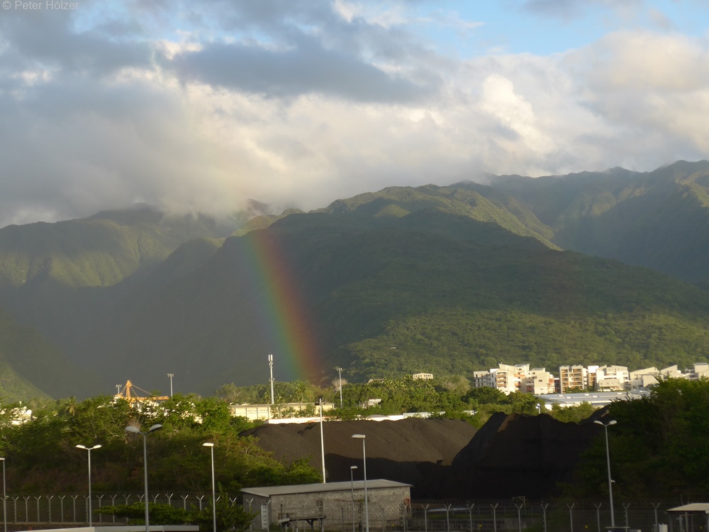 Am frühen Abend wurde das Ablegen von einem Regenbogen und einem schönen Sonnenuntergang begleitet. In vier Tagen, am Samstag, werden wir hier planmäßig noch mal anlegen.