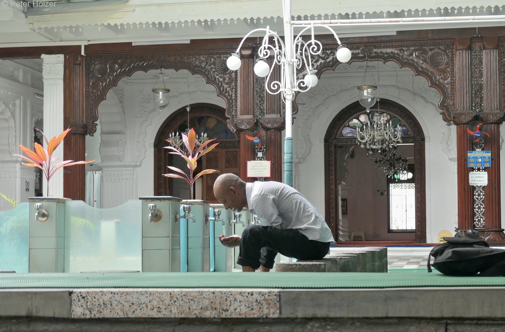 Geruhsamer ging es da schon in der Jummah Moschee zu. Wir wurden eingeladen, die Moschee zu betreten. Hier war es ruhig und angenehm kühl. Gerne verweilten wir für einige Zeit auf einer Bank und ruhten uns ein wenig aus, bis wir uns dann wieder auf unseren Sightseeing-Rundgang begaben.