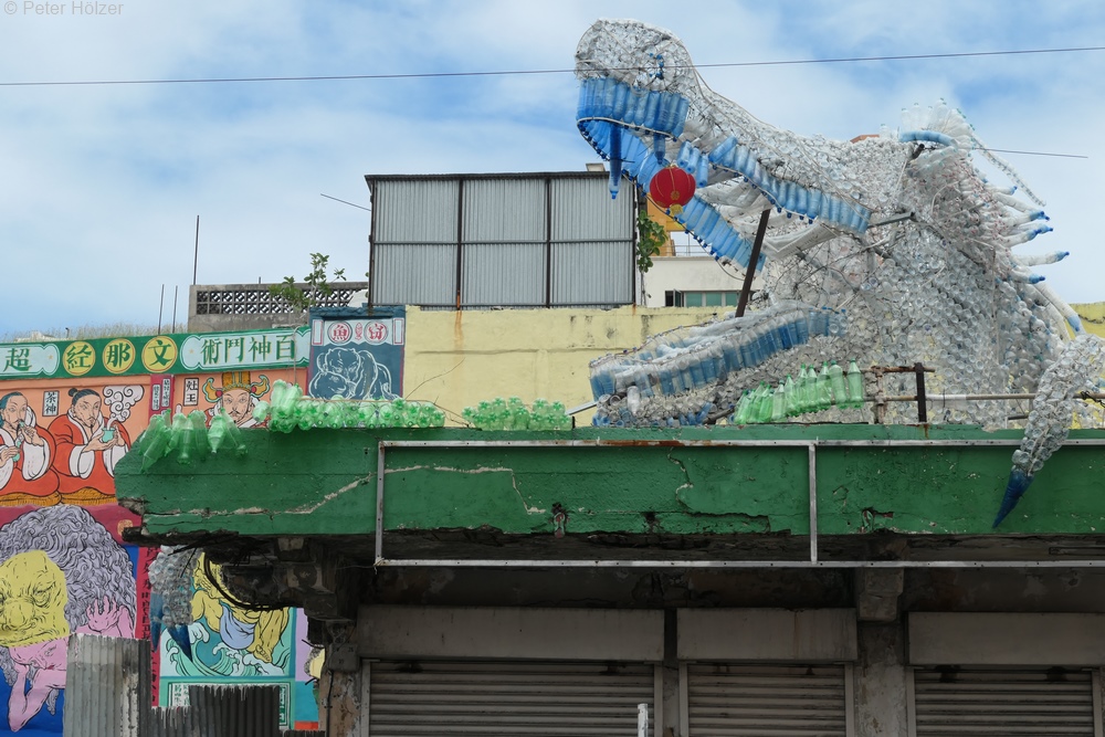 Im chinesischen Viertel fand eine Kunstaktion zum Thema Plastikmüll und Meeresverschmutzung statt. Hierzu hatten Künstler an den verschiedensten Stellen Objekte aus Plastikabfall hergestellt, wie hier einen überdimensionalen Drachenkopf.